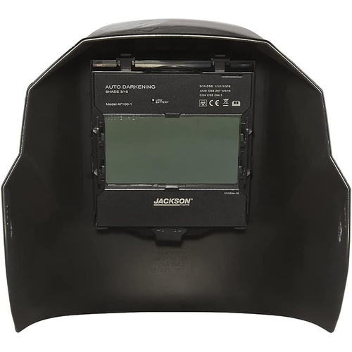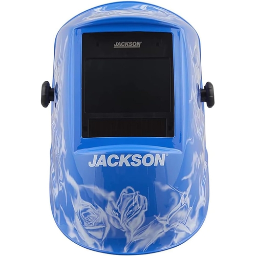 - Jackson Safety 47104 Reapers n’ Roses premium auto darkening welding helmet provides fixed shade protection with variable darkness level from shade 3 to shade 10; features 1/1/1/1 optical clarity, ANSI Z87.1, CE, and CAN/CSA Z94.3 compliance; ultra-lightweight design for reduced fatigue.