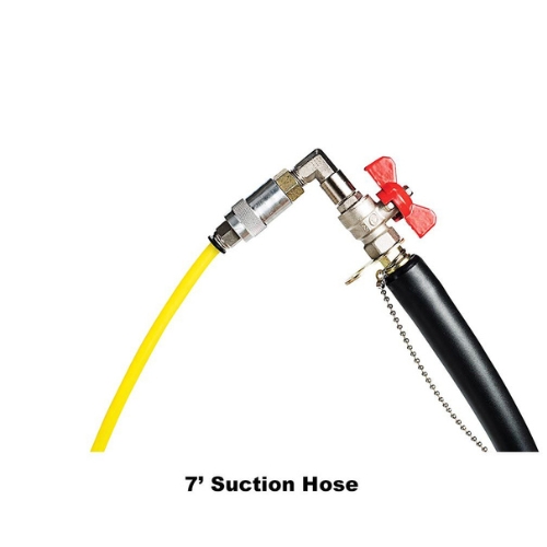 - Sight tube to check fluid level easily and a 10 foot quick-disconnect evacuation hose for discharge.