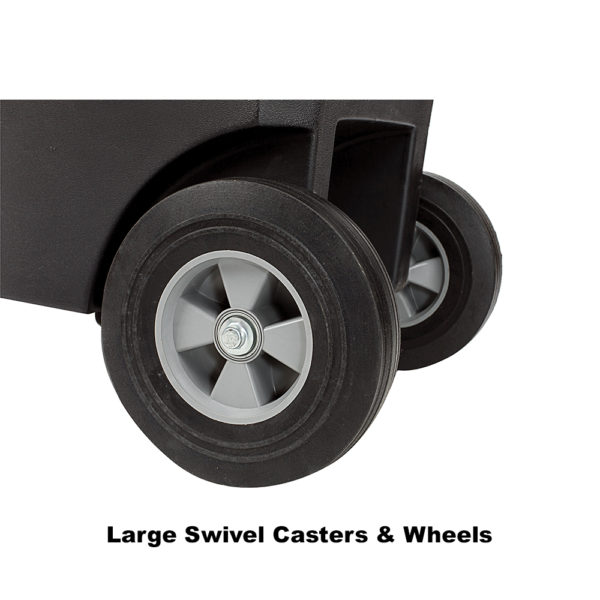 - Large Swivel Casters & Wheels: The 3″ front casters and 10″ rear wheels make it easy to maneuver.