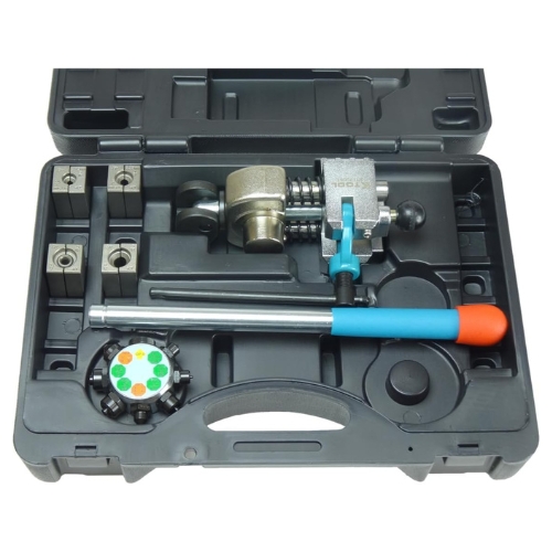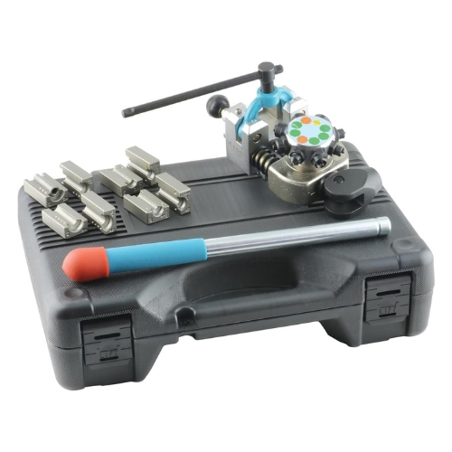 K-Tool International 70081 Automotive Brake Line Flaring Tool Set, 45 Degree, Vise Mounted Turret, T Handle Clamp, Single Double and Bubble Flares, 3/16 to 3/8 Inch Tubing