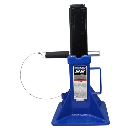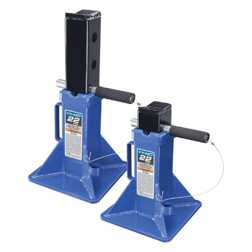 K-Tool International supplies professional lifting and support equipment for automotive and industrial service. The HD61222 pair combines a high capacity pin design, V shaped saddles, and a wide steel base to provide secure, standards compliant support.