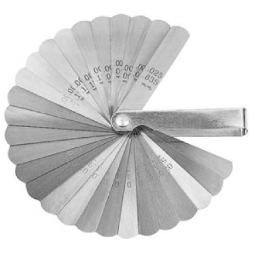• Feeler Gauge contains twenty-six 3'' x 1/2'' blades with thicknesses: