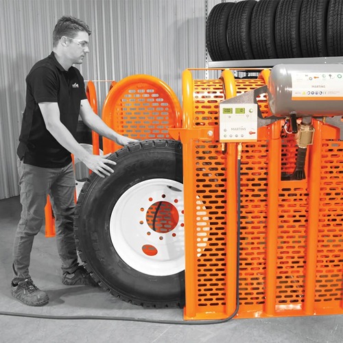- Included: 6-bar HD tire inflation cage with 52" air hose with chuck (MIC-6HD), Seating and inflating station (MSITTS), Quick coupling 1/4'' industrial, Tire roller, Wheel centering plate, Rechargeable lithium-ion battery with charger, Safety information & procedures sticker, User manual.