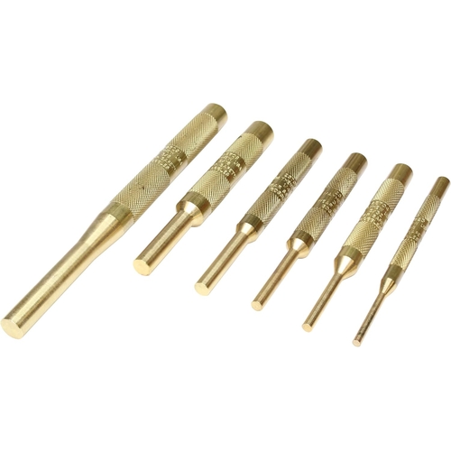 • Also known as 6-Piece Brass Pin Punch Set, SAE brass punch set, non-marring punch kit, precision brass pin punches, professional brass punch set.