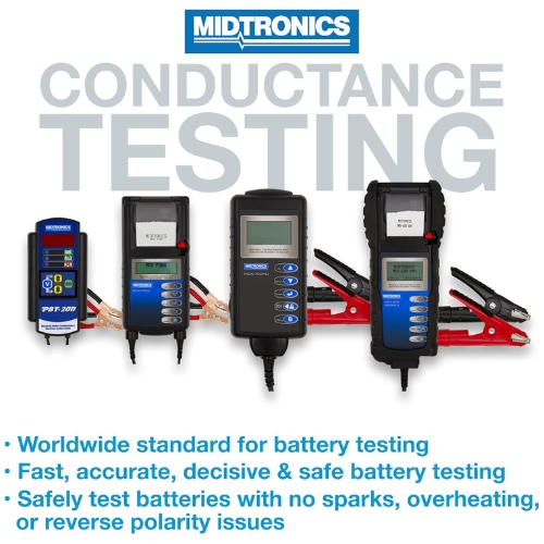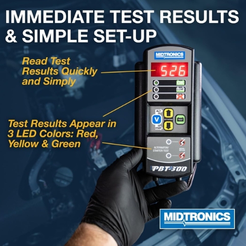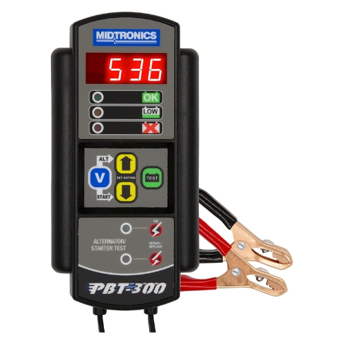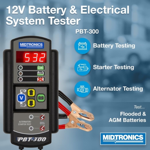 - Midtronics PBT-300 is a 12 volt automotive battery and electrical system tester that uses conductance technology to deliver fast, accurate diagnostics. It covers 100 to 1400 CCA and captures cranking and charging system voltage to pinpoint weak batteries, starters, and alternators. Standalone tester, not a replacement part.