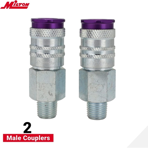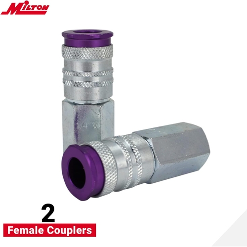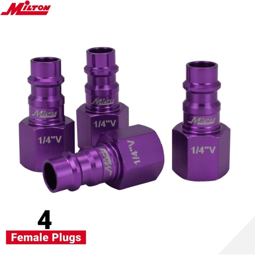 - The Milton 314VKIT Coupler & Plug Kit contains 14 anodized purple Hi-Flo V-Style fittings (1/4 NPT), offering high-flow quick-connect performance and intuitive color-coded matching for efficient air system organization.