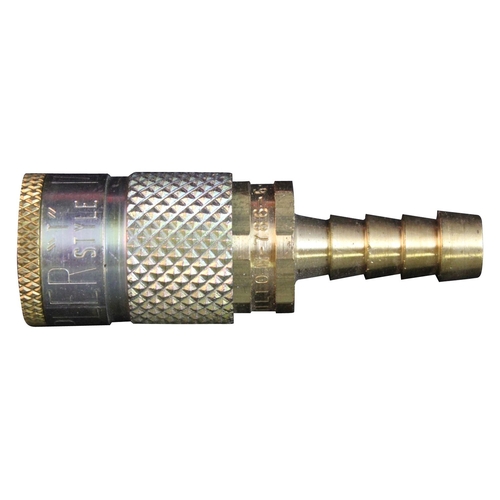 Milton 717-6 M Style Coupler, 3/8" Hose Barb, Brass Body with Drag Guard