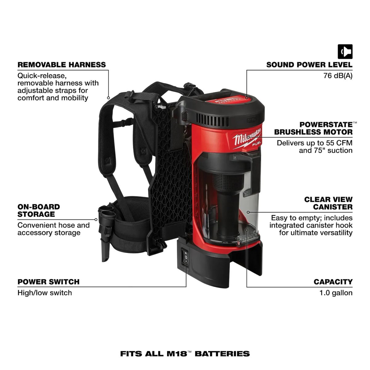 - Milwaukee 0885-20 is an M18 FUEL 3-in-1 backpack vacuum for jobsite cleanup. It delivers HEPA filtration with strong suction performance and can be worn, hung, or carried for access and speed. This is a dry vacuum and a standalone tool, not a replacement part.