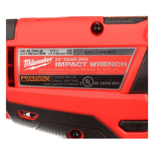 - Milwaukee 2454-20 is an M12 FUEL cordless impact wrench designed for fastening in tight spaces. It delivers up to 117 ft-lbs of torque with 2-Mode Drive Control for precise power and speed. The 3/8 inch drive and compact body support quick access and controlled fastening; this is a standalone tool, not a replacement part.