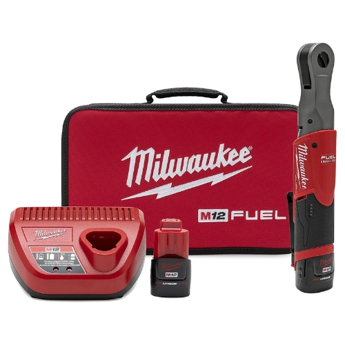 - The Milwaukee 2557-22 can also be referred to as cordless ratchet kit, FUEL 3/8 inch drive kit, Redlithium ratchet bundle, high torque 3/8 inch ratchet combo, and M12 FUEL ratchet 2-battery set.