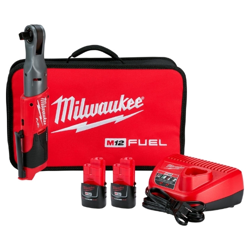- Milwaukee 2558-22 is a cordless ratchet kit in the M12 Fuel system that delivers up to 60 foot-pounds of max torque and 175 revolutions per minute. It replaces pneumatic ratchets for automotive, repair, and maintenance tasks while allowing access in tight spaces.