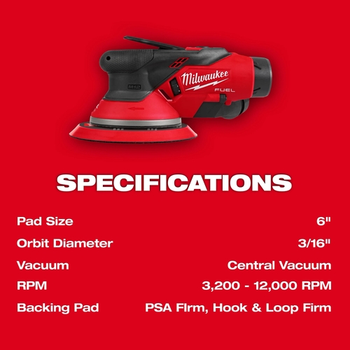 • The Milwaukee M12 FUEL random orbital sander can also be referred to as 6 inch cordless sander, 3/16 inch orbit sander, M12 body sander, brushless random orbital sander, and automotive panel sander.