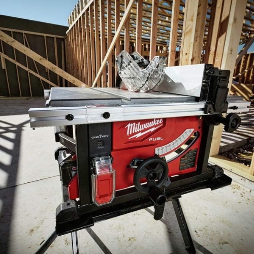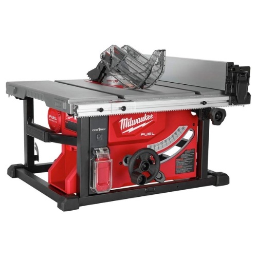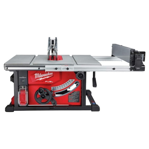 - The Milwaukee 2736-21HD is a full kit version of the M18 Fuel 8-1/4 inch Table Saw with One-Key technology. It includes the saw body, Redlithium High Output HD12.0 battery, rapid charger, blade, guard, miter gauge, anti-kickback pawls, riving knife, and blade wrench. It delivers 15 Amp corded equivalent power, 24-1/2 inch rip capacity, and up to 600 linear feet of cutting per charge.