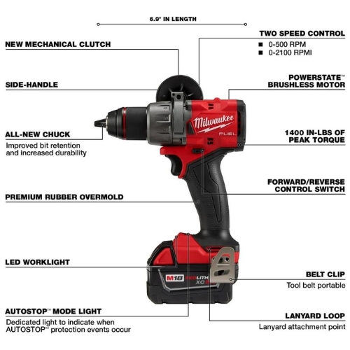 - This Milwaukee M18 Fuel 2903-22 1/2 inch Drill/Driver Kit is a cordless, brushless toolset that delivers 1,400 in-lbs of torque, designed for heavy-duty drilling and fastening in dense materials. It includes two Redlithium XC5.0 batteries and the multi-voltage charger for both M18 and M12 systems.