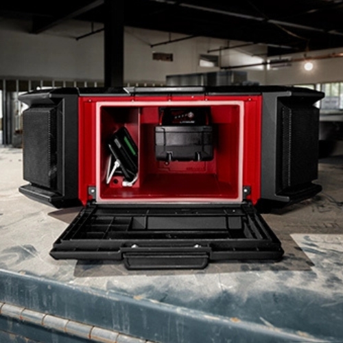 - System Compatibility : Designed for use on jobsites where audio, battery charging, and storage integration (PACKOUT) are needed; replaces or augments separate radio, speaker, and charger units.