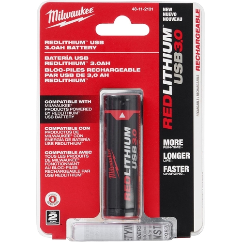 - Milwaukee 48-11-2131 REDLITHIUM USB 3.0Ah Battery is a 4 V lithium-ion battery pack that powers Milwaukee USB Rechargeable products. It is designed to provide increased capacity compared to the first generation 48-11-2130 battery, supporting longer runtime in compatible Milwaukee USB rechargeable tools and lights.