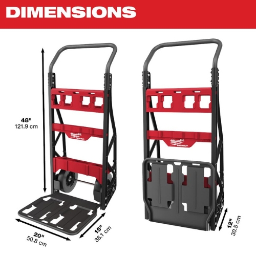 - The Milwaukee 48-22-8415 packout 2-Wheel Cart Hand Truck enables easy transport of packout modular storage boxes and heavy tools across the jobsite; it features a heavy-duty frame, large all-terrain wheels, and a 400 lb weight capacity for durable, reliable performance.