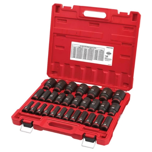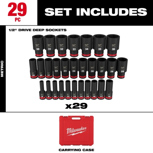 - The Milwaukee 49-66-7015 SHOCKWAVE 29 Piece 1/2 inch Drive Metric Deep 6-Point Impact Socket Set is a professional-grade socket set built for impact tool durability. It includes 29 metric deep sockets in tough forged impact steel, plus a sturdy carrying case for organization and transport.