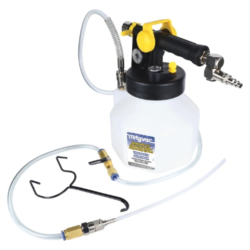 Mityvac designs professional fluid evacuation and dispensing systems for shop use. MV7102 combines a compact 2.5 quart reservoir, shop air operation, and switchable vacuum or pressure modes to support fast, controlled service across common vehicle fluids.