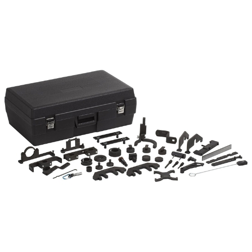 - Includes specialized adapters for camshaft holding, crankshaft alignment, and chain/belt tensioning operations
