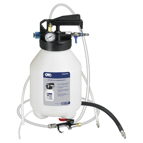 The OTC 6792-EDB Transmission Fluid Reservoir is built to streamline transmission fluid service by providing a sealed, safe, and efficient method to extract or dispense fluid without contamination or mess.