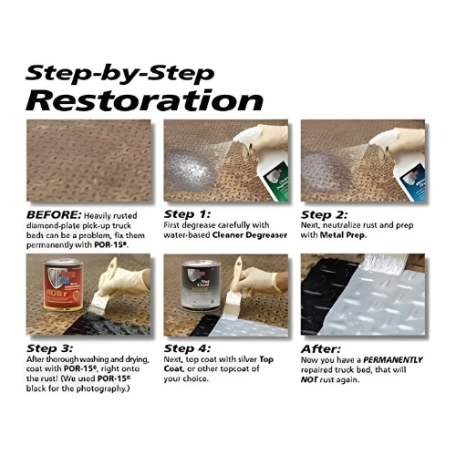 - System Compatibility or Application: coat rusted, sandblasted, or seasoned metal; top coat if UV exposure is expected; not a replacement part