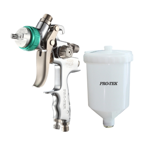 - Pro-Tek 2600-14 is a conventional gravity feed paint spray gun with a 1.4 mm nozzle and a 600 ml plastic cup. It features low air consumption and a wide working pressure range for consistent atomization in primers, basecoats, and clearcoats. Includes the 600 ml cup for immediate use.