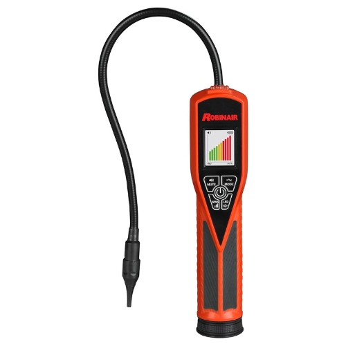 The Robinair LD9-TG Tracer Gas Leak Detector provides precise leak localization using tracer gas instead of refrigerant. With high sensitivity, fast warm-up, and a full color LCD interface, it aids technicians in detecting even very small leaks with ease.