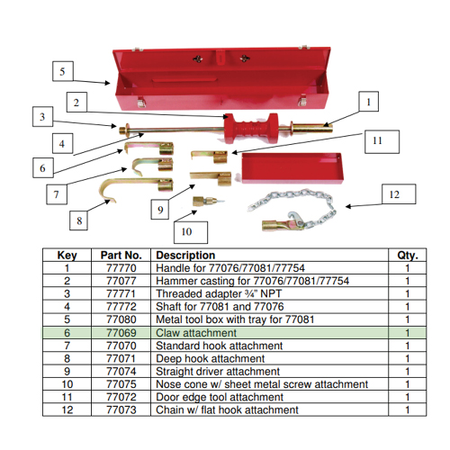 - The S&H Industries 77069 Claw (Standard Hook) is a replacement curved hook/claw attachment designed for the Knocker SR Dent Puller Sets (model 77081 and 77076). It allows technicians to grab, pull, and shape body panels using the slide hammer or attachments in those kits.
