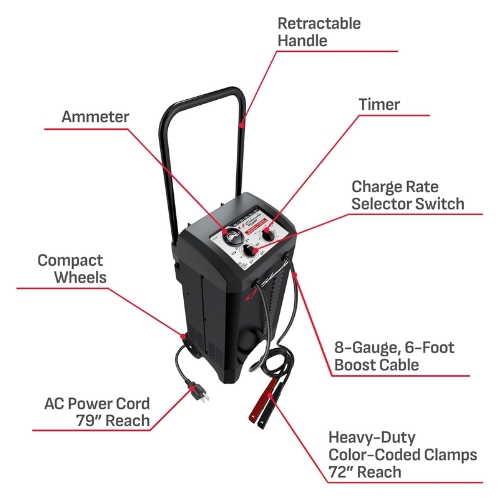Schumacher SC1446 Manual Wheeled Battery Charger/Engine Starter 10A / 200A 2-in-1 Unit
