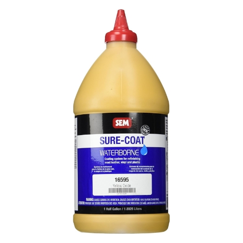 - SEM 16595 is Sure-Coat Yellow Oxide in a half gallon size for refinishing leather, vinyl, and plastic. This waterborne coating promotes strong adhesion while maintaining substrate texture and flexibility, and it can be brushed or sprayed for quick, uniform results. It is a standalone finish, not a replacement part.