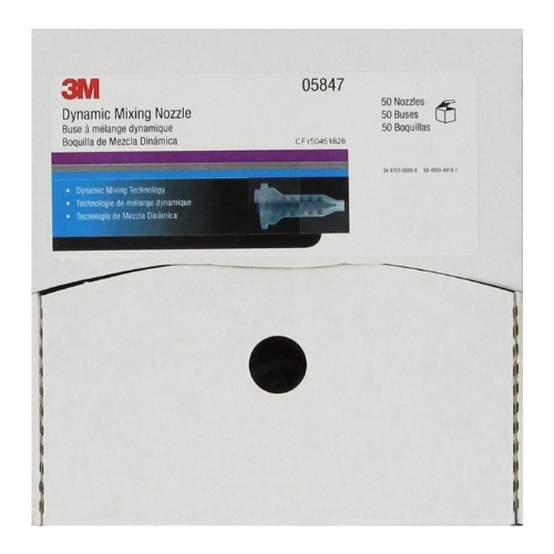 - 3M 05847 is a Dynamic Mixing System nozzle designed for DMS 1.0 fillers and glazes. It actively mixes two-part materials to consistent ratios, helps minimize pinholes, and reduces waste due to its short length. This red nozzle is packaged 50 per carton and is used with the 3M Dynamic Mixing Applicator 05846.