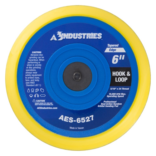- The AES Industries AES-6527 Tapered DA Sanding Pad is designed to provide a smooth and even sanding experience across various surfaces. Its cushioned construction allows for effective sanding on both convex and concave areas, ensuring a professional finish. The lightweight and perfectly balanced design facilitates faster work with reduced fatigue. Featuring a hook and loop face, this pad enables quick and easy sandpaper disc changes, enhancing workflow efficiency. The 5/16"-24 threaded arbor ensures compatibility with most dual action sanders, making it an essential tool for auto body repair and refinishing professionals.