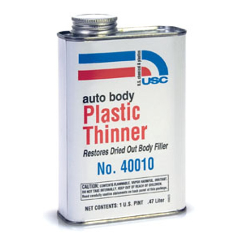 - The USC 40010 Plastic Thinner Honey 16 fl oz is a polyester-based solvent blend designed to restore the workability of thickened or partially hardened body fillers. Its honey-colored formula enhances flow, smoothness, and adhesion during automotive body repair and refinishing applications.