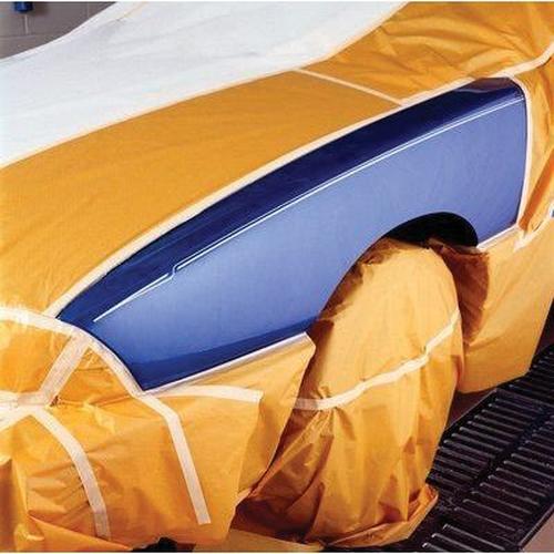 A: The wider roll covers broad areas in fewer passes, reducing seams and masking tape usage, especially useful for full-panel or wrap masking in large vehicle surfaces.