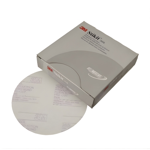• 3M 01320 Stikit Finishing Film Abrasive Disc 260L is a 6 inch P800 film-backed sanding disc for fine paint finishing and defect removal. It uses aluminum oxide on a durable film with Stikit pressure-sensitive adhesive for fast changes and a consistent cut; this is a consumable, not a replacement part.