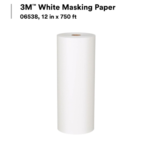 - 3M 06538 White Masking Paper is a 12 inch x 750 ft automotive masking roll that protects surfaces from overspray and bleed-through. The paper is specially treated for heat resistance, and its tightly bonded construction is lint and fiber free for cleaner finishes in paint booth operations.