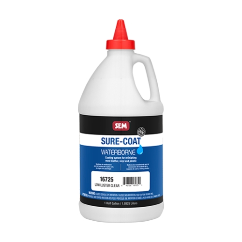 - SEM 16725 is Sure-Coat Low Luster Clear in a half gallon can. This waterborne coating provides flexible, durable protection and appearance control on leather, vinyl, and plastic, and can be brushed or sprayed for quick, uniform results. It is not a replacement part.