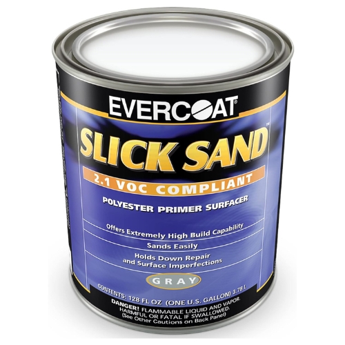 - EVERCOAT SLICK SAND 709 is a high-solids, extra high-build polyester primer surfacer designed to fill rough and uneven surfaces in fewer coats. It delivers strong adhesion to fiberglass, wood, body filler, SMC, and epoxy primer substrates.