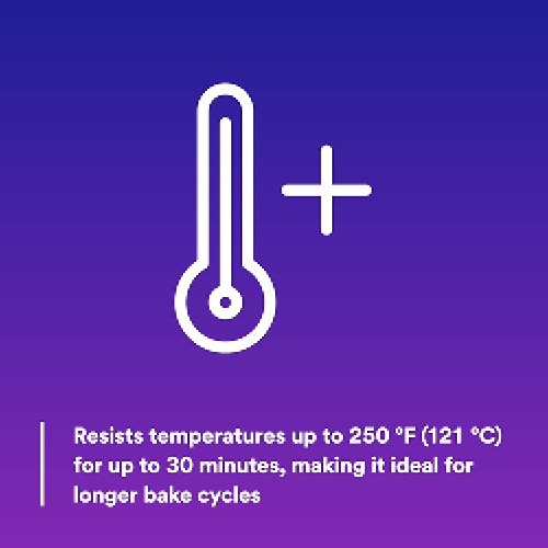 • Resists temperatures up to 250°F (121°C) for up to 30 minutes, ideal for longer baking cycles.