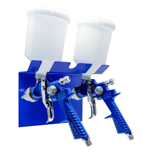 - Holds two spray guns simultaneously for increased efficiency