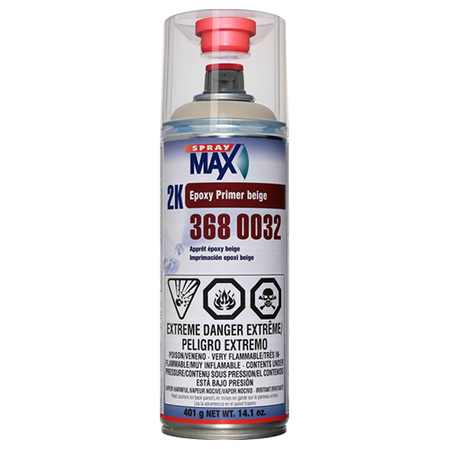 • The SprayMax 3680032 2K Epoxy Primer Filler Beige 12.7 oz Aerosol is a universal two-component epoxy primer designed for adhesion and corrosion protection on difficult substrates such as metal, non-ferrous metal, galvanized steel, and anodized aluminum.
