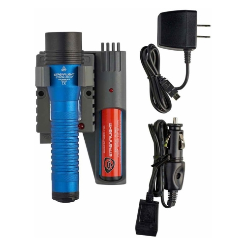 - Streamlight 74782 is a Strion LED HL rechargeable flashlight kit in blue for duty and industrial lighting. It provides a bright 615 lumen wide beam and charges in a PiggyBack holder from 120V AC or 12V DC power. This is a complete kit, not a replacement part for another SKU.