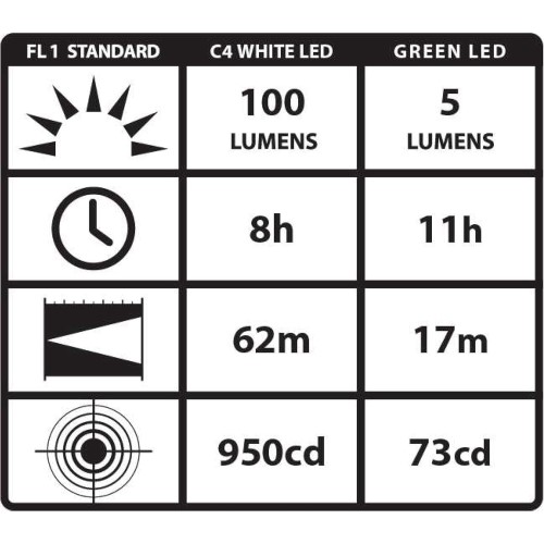 - Type II MIL-SPEC abrasion and corrosion-resistant anodized aircraft aluminum construction with unbreakable, scratch-resistant polycarbonate lens