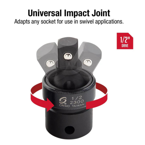 - The Sunex 2300 1/2" Drive Universal Impact Joint can also be referred to as a universal joint socket, impact universal joint, flexible impact joint, and professional-grade joint.