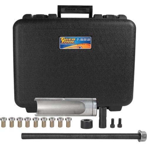 - Utilize the Tiger Tool 15060 Adapter with the Tiger Tool 15000 Pin & Bushing Starter Kit to seamlessly remove and install pins and bushings across a broad spectrum of heavy-duty truck manufacturers. This adapter allows you to perform maintenance while the entire suspension remains on the vehicle, offering unparalleled convenience and efficiency.