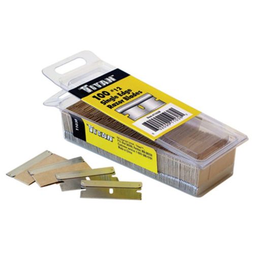 • The Titan 11038 Single Edge Razor Blades are high-quality #12 blades designed for versatile cutting applications. With a thickness of 0.012 inches, these blades provide durability and precision. The pack includes 100 single edge blades that fit all standard razor blade tools, making them ideal for use in industrial, automotive, and household settings.