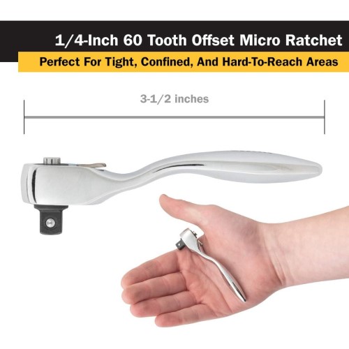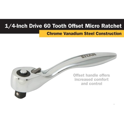 Titan 11204 1/4" Drive Offset Micro Ratchet, 60-Tooth, Compact Design