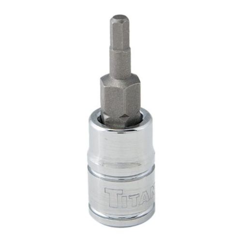 • The Titan 15603 Hex Bit Socket is designed for durability and precision, featuring a 3mm hex bit and a 1/4-inch drive. Ideal for detailed work in various automotive and industrial applications, this socket is crafted from high-quality chrome vanadium steel, providing a polished chrome finish for superior corrosion resistance and long-lasting performance.