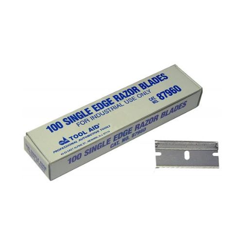 - The Tool Aid 87960 Single Edge Razor Blades are designed for clean, precise cutting in automotive and body shop applications. These industrial-grade blades are individually wrapped and compatible with scrapers such as Tool Aid 87940, making them ideal for removing decals, adhesives, and inspection stickers.